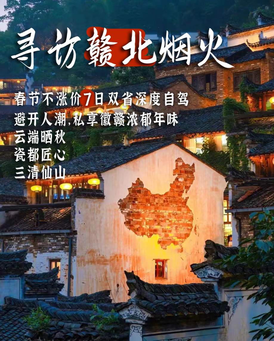 在木梨硔的晨雾与鸡鸣中醒来。随后驱车前往篁岭,乘索道上山。这个时节,家家户户的晒楼上依然色彩斑斓,构成一幅独特的“晒秋”画卷。穿梭在天街古巷,感受徽派建筑与浓厚年俗的完美融合。傍晚下山,宿于婺源县城。