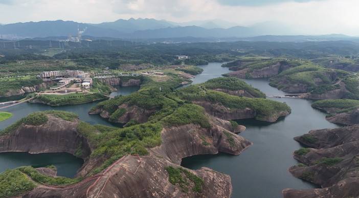 在湖南郴州,一片宛如巨龙脊背的红岩绿水奇迹般铺展。