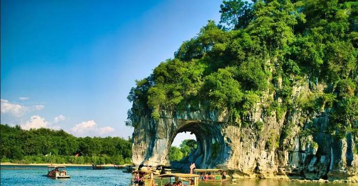 今天前往桂林,桂林山水甲天下,游览桂林城徽象鼻山。这座酷似巨象饮水的神奇山峰,其实是“象鼻”与“象腿”之间形成的水月洞。漫步于公园内,从不同角度欣赏山影倒映在清澈漓江中的画卷,真正读懂“桂林山水甲天下”的起点。夜晚入住阳朔市区。