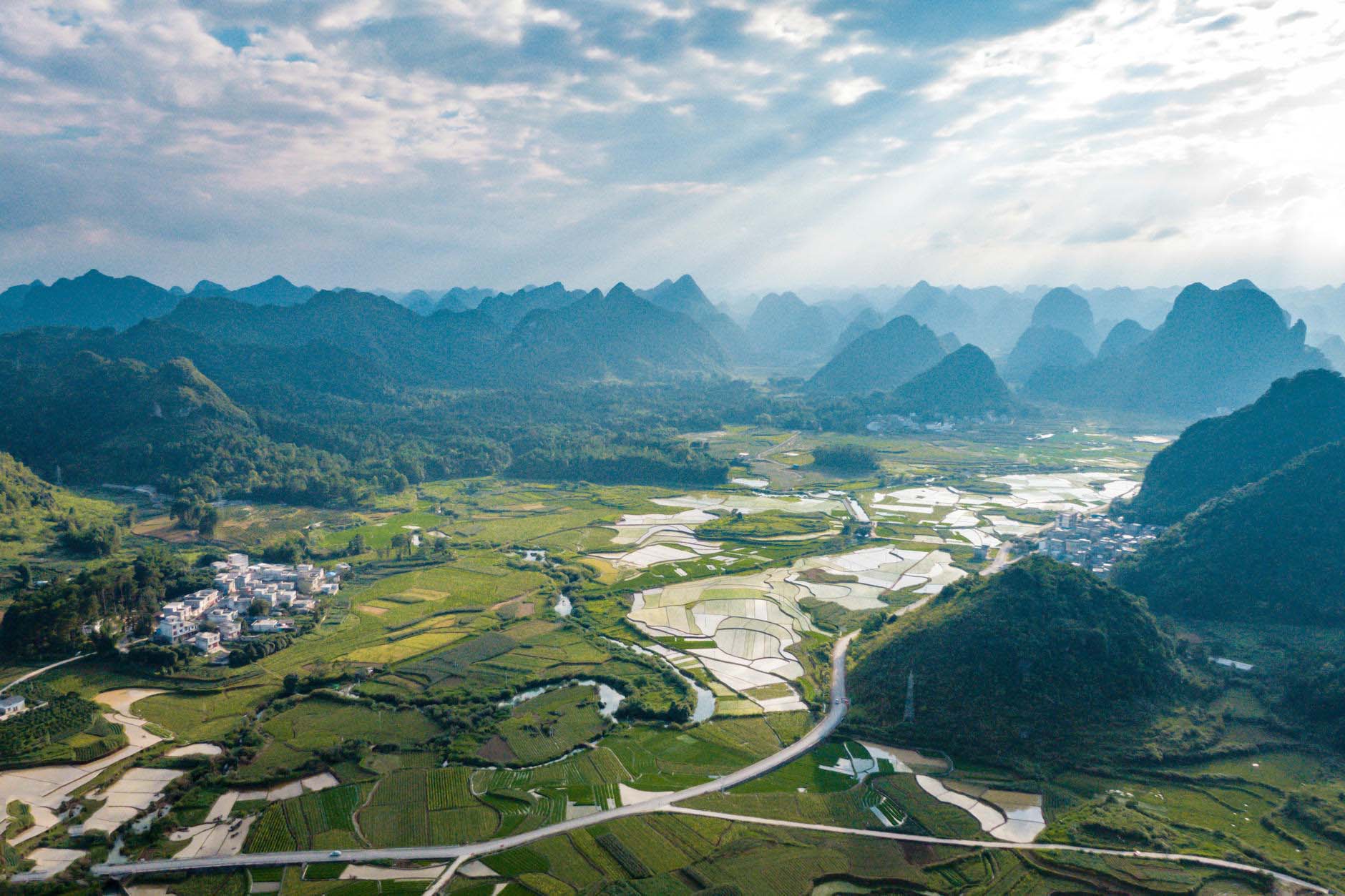 穿梭于喀斯特峰林与田园之间,邂逅网红秋千。