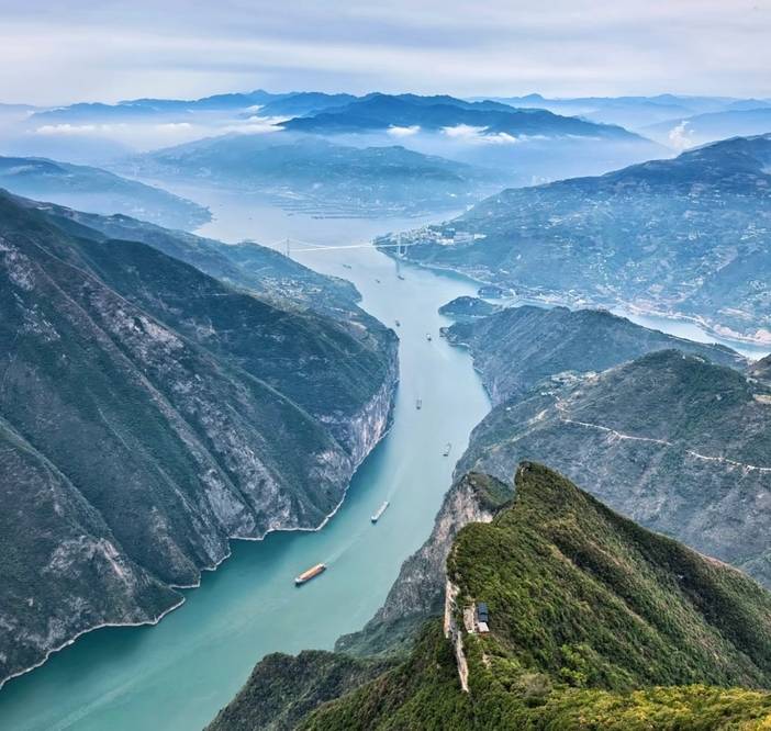 长江水在此被峡谷收紧,